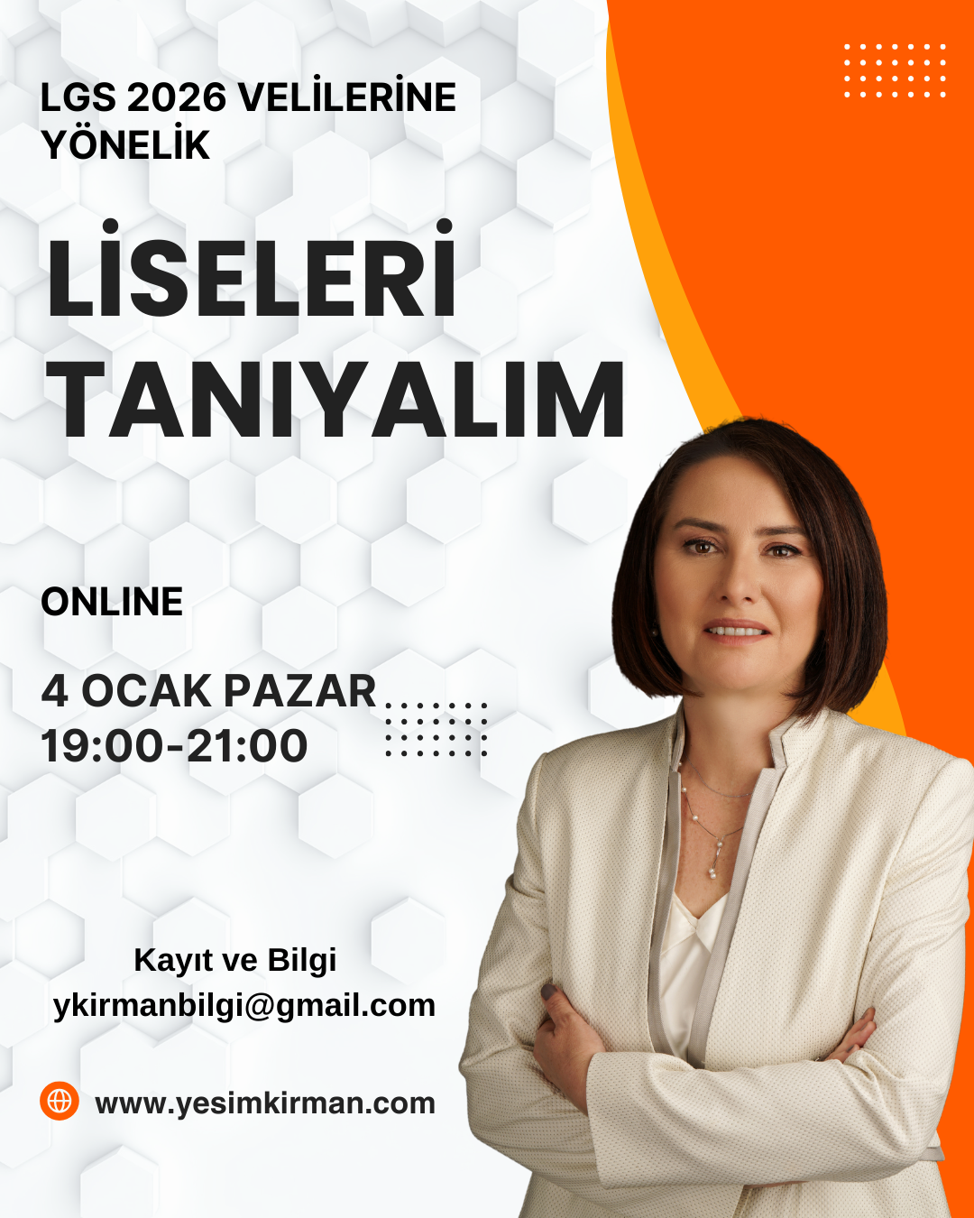4 Ocak 2026 Pazar günü 19:00’da online bir seminer düzenliyorum. Bu seminerde, resmi Anadolu ve fen liselerinin, yabancı liselerin ve aynı takvimle öğrenci alan Türk özel liselerin tüm detaylarını sizlere aktaracağım. Hem bilgi hem de rehberlik dolu bu buluşmada, LGS sürecindeki velilerimizin soru işaretlerini ortadan kaldırmayı hedefliyorum.