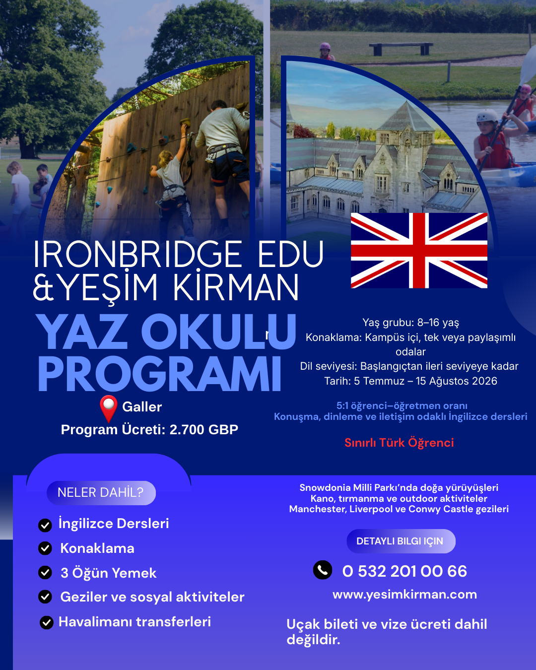 Velilerimizden gelen yoğun talepler doğrultusunda, Ironbridge Education & Consultancy ile gerçekleştirdiğimiz iş birliği kapsamında 2024 yılından bu yana İngiltere yaz okulu programları organize ediyoruz. Bu yıl da birbirinden faydalı, güvenli ve nitelikli programları sizlerle buluşturmaktan mutluluk duyuyoruz.